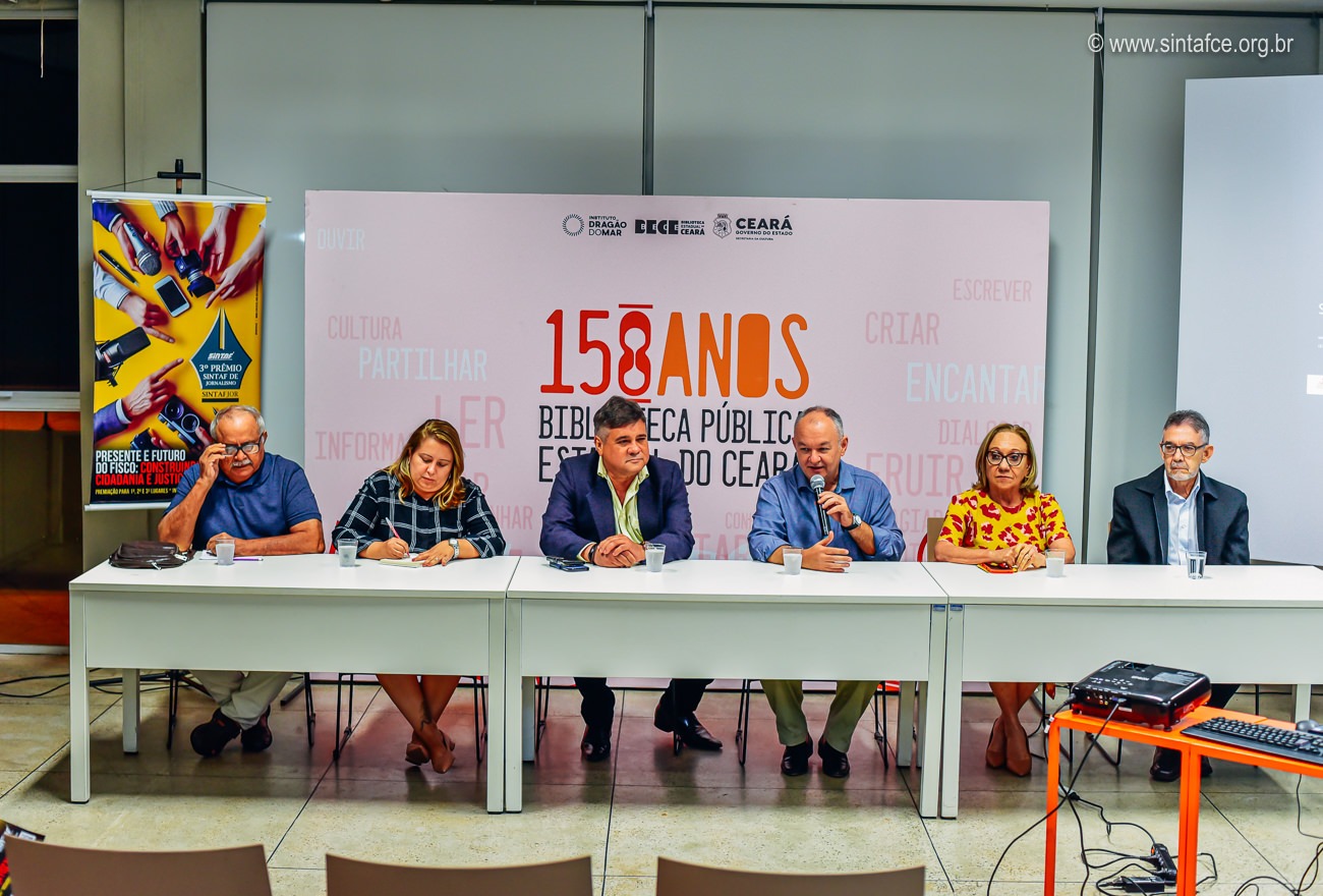 A jornalista Angela Marinho representou o Prêmio Gandhi de Comunicação e o Sindicato dos Jornalistas no lançamento do 3º Prêmio Sintaf de Jornalismo – SintafJor, na noite desta terça-feira, 2 de setembro. O evento aconteceu na Biblioteca Pública Estadual do Ceará (BECE) e reuniu nomes de expressão do jornalismo cearense, além de professores, gestores públicos e fazendários. Com o 3º SintafJor, o Sintaf convida mais uma vez os profissionais da imprensa e os estudantes de Jornalismo a refletirem sobre o compromisso social da atividade fazendária, com o tema: “Presente e futuro do fisco: construindo cidadania e justiça fiscal”.