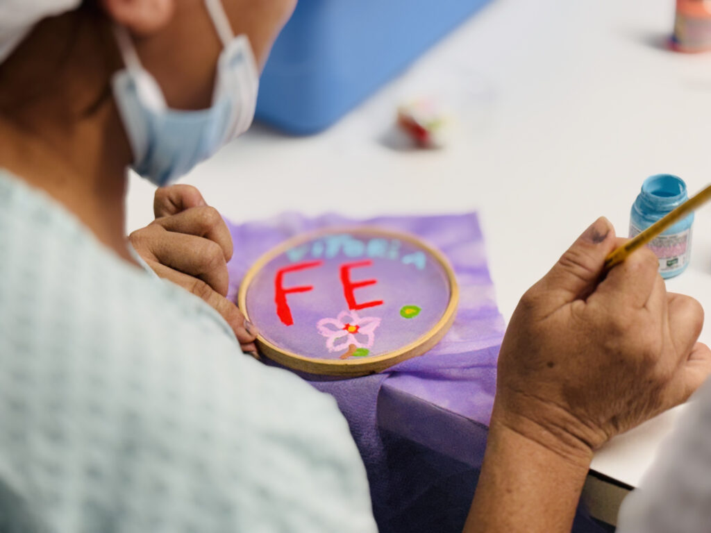 “Quando fazemos essas oficinas, não é só para dar um sorriso, mas também para trabalhar a saúde mental. As oficinas precisam ter atividades significativas e importantes, não apenas para o momento da hospitalização, mas porque, ao trabalharmos com a mãe, alcançamos a criança”, afirma Viviane.